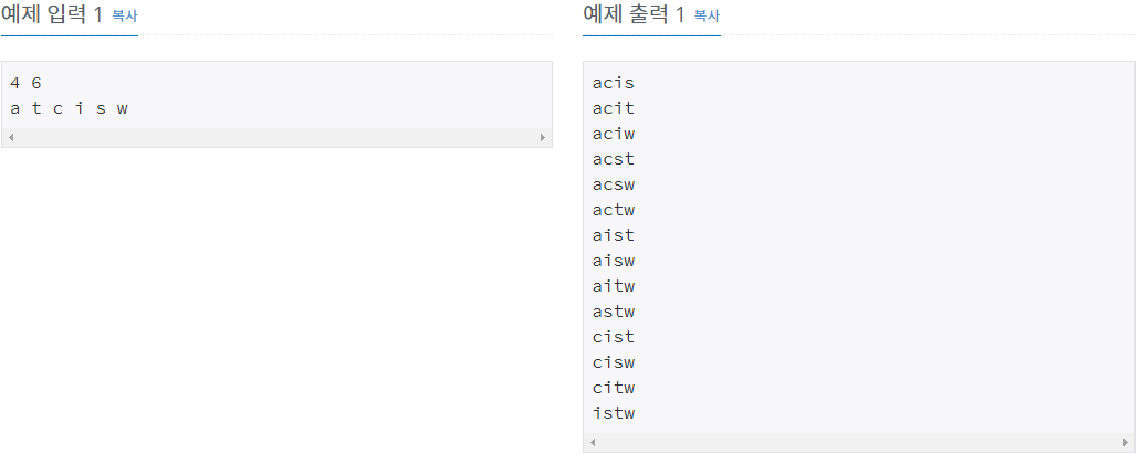 문제 출처 : https://www.acmicpc.net/problem/1759