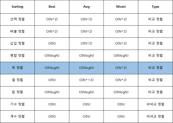 NlogN의 시간 복잡도를 가진 퀵 정렬은 굉장히 빠르다고 할 수 있다.
