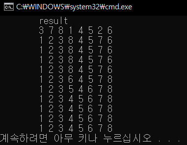 int arr[8] = { 3, 7, 8, 1, 4, 5, 2, 6 };