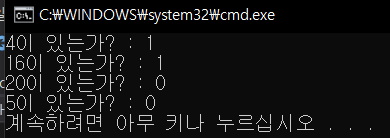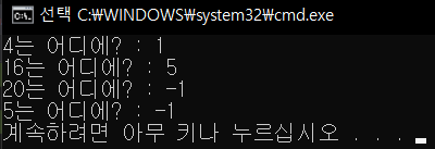 cout <<search[i]<<"는 어디에? : "<< binary(0,7,sortedArray,search[i]) << '\n';