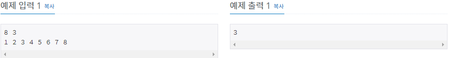 첫 번째 줄에는 정수 n, k가 주어진다. (1 ≤ k ≤ n ≤ 10^6)