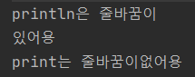 println()은 standard ouput stream에 줄바꿈 개행을 포함하여 주어진 메시지를 출력한다.