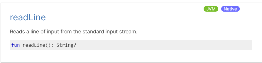 코틀린의 표준 라이브러리 중 kotlin.io에 속한 함수로 대표적인 입력 함수이다.