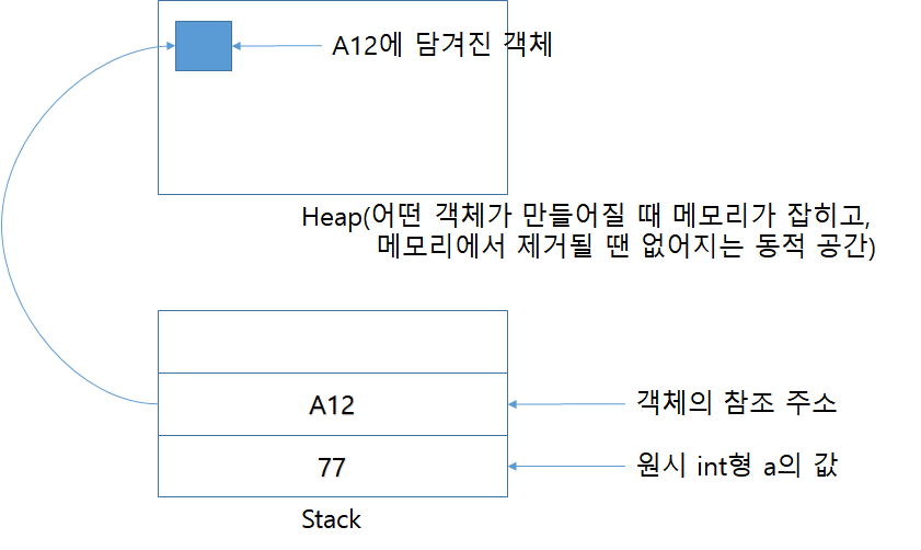 Person person = new Person(); //객체 참조형으로 person 객체를 위해 참조 주소(A12)를 가진다.