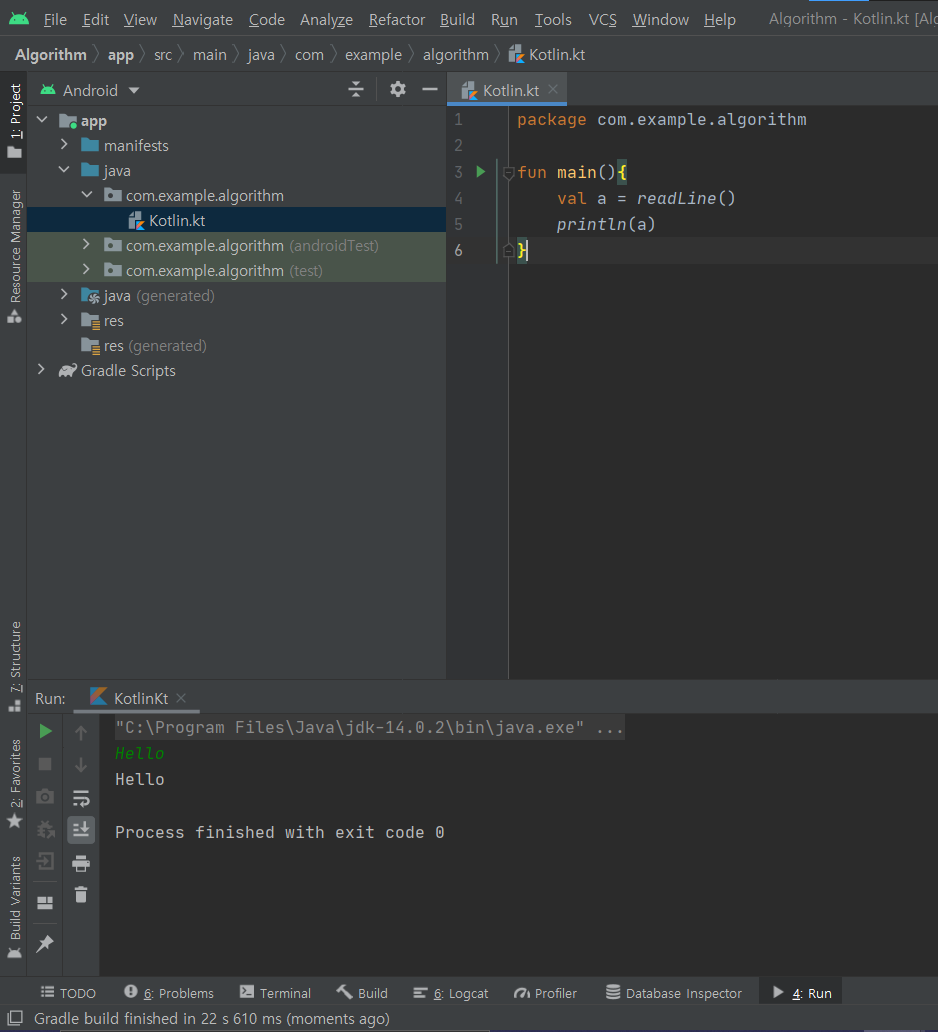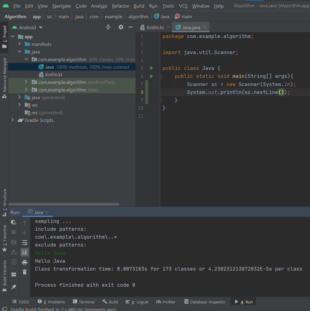 알고리즘 문제 풀이 및 코드 테스트를 위해 안드로이드 스튜디오에서
