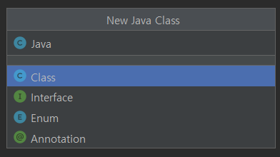 11. Class를 선택 후 클래스 명을 입력하고 엔터를 누른다