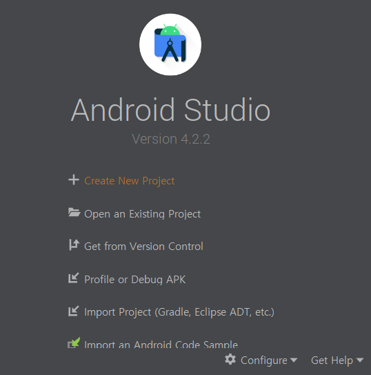 1. Create New Project를 선택한다