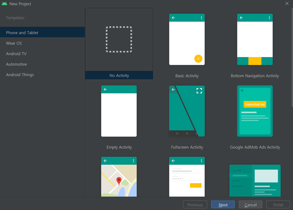 2. No Activity를 선택한다
