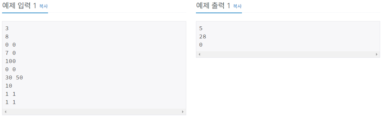 입력의 첫째 줄에는 테스트 케이스의 개수가 주어진다.