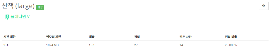 산책 small 문제를 풀고 large로 넘어와, 기존 small 코드를 다익스트라버전으로 리팩토링하여 제출하였다.