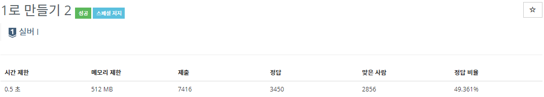 정수 N이 주어졌을 때, 위와 같은 연산 세 개를 적절히 사용해서 1을 만들려고 한다. 연산을 사용하는 횟수의 최솟값을 출력하시오.
