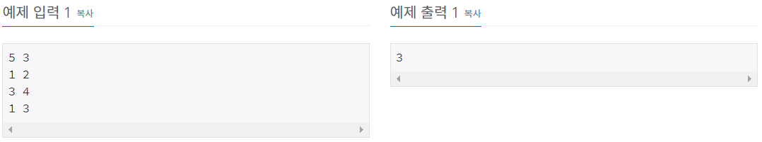 첫째 줄에 정수 N과 M이 주어진다. N은 아이스크림 종류의 수이고, M은 섞어먹으면 안 되는 조합의 개수이다. 아래 M개의 줄에는 섞어먹으면 안 되는 조합의 번호가 주어진다. 같은 조합은 두 번 이상 나오지 않는다. (1 ≤ N ≤ 200, 0 ≤ M ≤ 10,000)