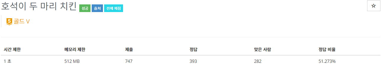 21278번: 호석이 두 마리 치킨