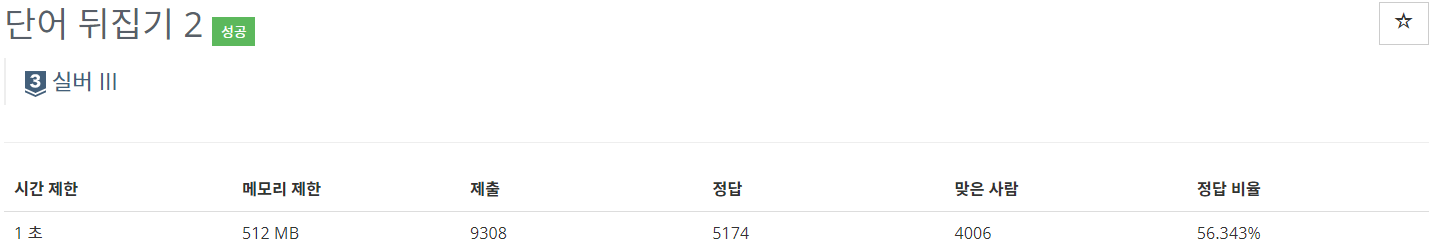 input의 마지막까지 탐색 후, word가 남아있다면 answer에 단어를 뒤집어서 추가한다.