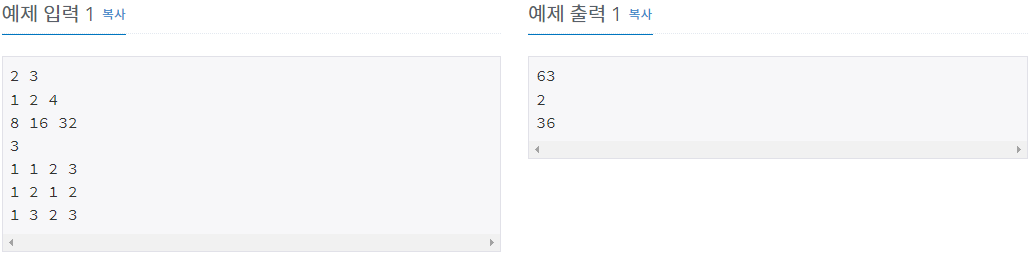 첫째 줄에 배열의 크기 N, M(1 ≤ N, M ≤ 300)이 주어진다. 다음 N개의 줄에는 M개의 정수로 배열이 주어진다. 배열에 포함되어 있는 수는 절댓값이 10,000보다 작거나 같은 정수이다. 그 다음 줄에는