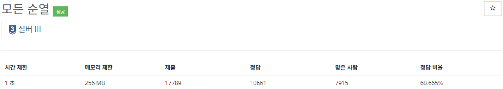 문제 출처 : https://www.acmicpc.net/problem/10974