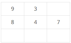 다음은 9번 학생이다. 9번 학생이 좋아하는 학생의 번호는 8, 1, 2, 3이고, 이 중에 3은 자리에 앉아있다. 좋아하는 학생이 가장 많이 인접한 칸은 (1, 1), (1, 3)이다. 두 칸 모두 비어있는 인접한 칸이 1개이고, 행의 번호도 1이다. 따라서, 3번 조건에 의해 (1, 1)이 9번 학생의 자리가 된다.