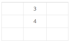 다음 학생은 3번이다. 1번 조건을 만족하는 칸은 (1, 2), (2, 1), (2, 3), (3, 2) 이다. 이 칸은 모두 비어있는 인접한 칸이 2개이다. 따라서, 3번 조건에 의해 (1, 2)가 3번 학생의 자리가 된다.