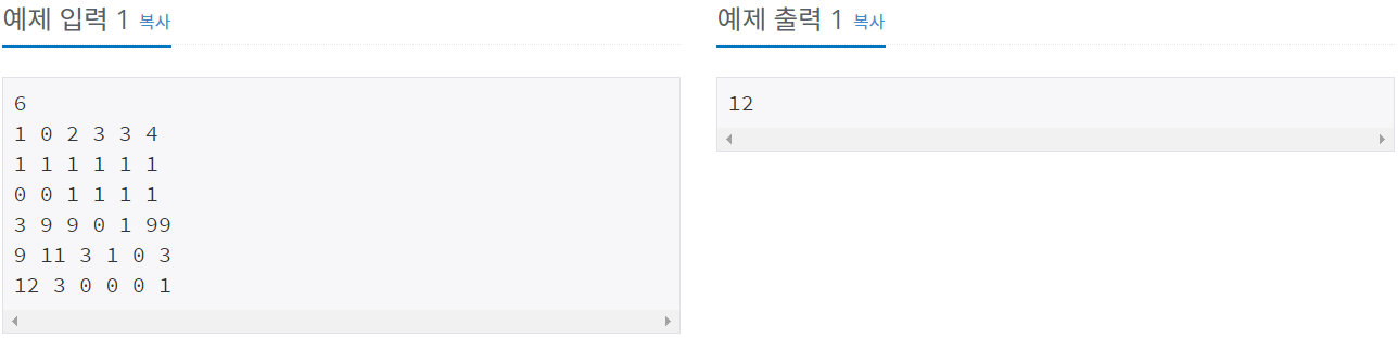 이후 N개의 줄에 N개씩 화단의 지점당 가격(0≤G≤200)이 주어진다.