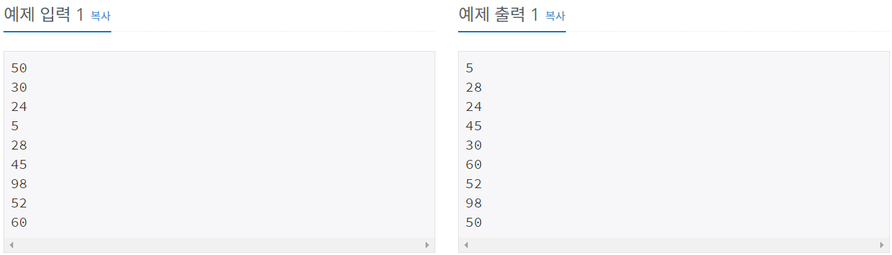 문제 출처 : https://www.acmicpc.net/problem/5639