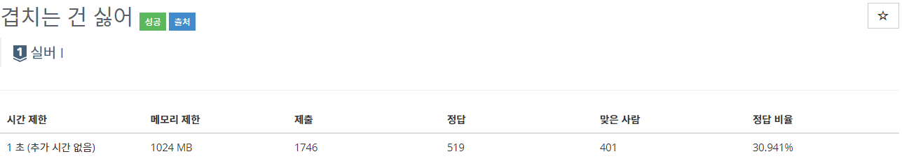 20922번: 겹치는 건 싫어