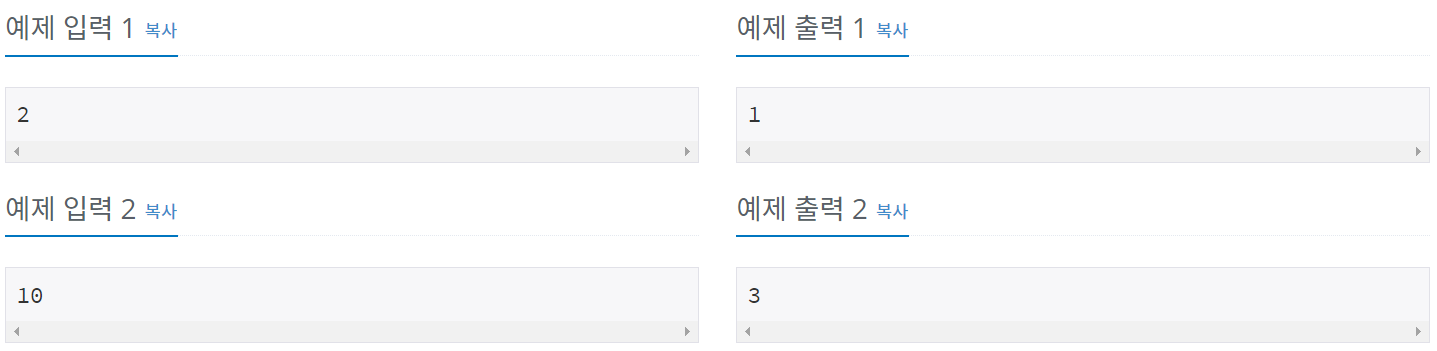 정수 N이 주어졌을 때, 위와 같은 연산 세 개를 적절히 사용해서 1을 만들려고 한다. 연산을 사용하는 횟수의 최솟값을 출력하시오.