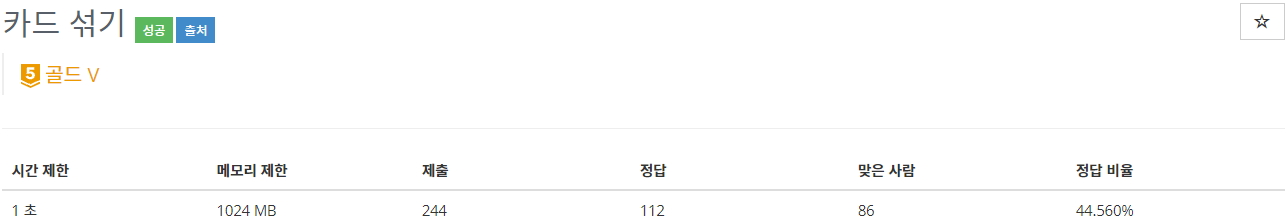 2 개로 이루어진 쌍이기 때문에 2중 for문으로 쌍은 쉽게 찾을 수 있고, 카드 섞기 또한, 그냥 temp배열 만들고, 바꿔주면 된다.
