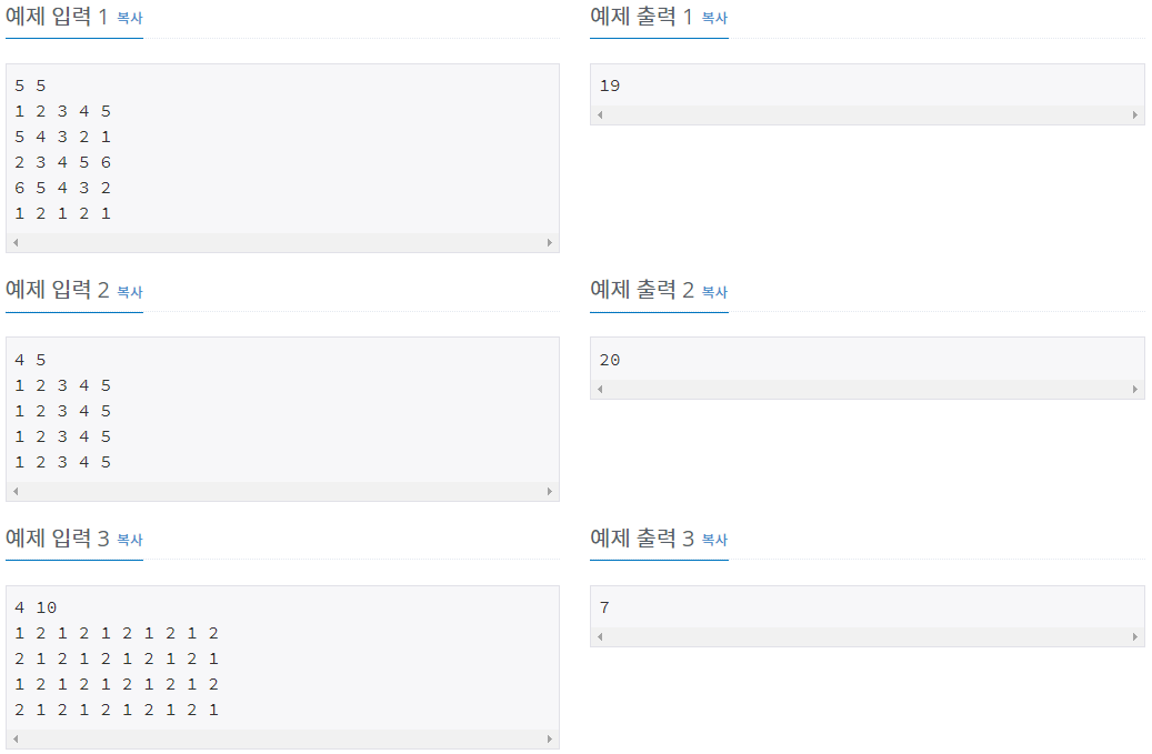 첫째 줄에 종이의 세로 크기 N과 가로 크기 M이 주어진다. (4 ≤ N, M ≤ 500)