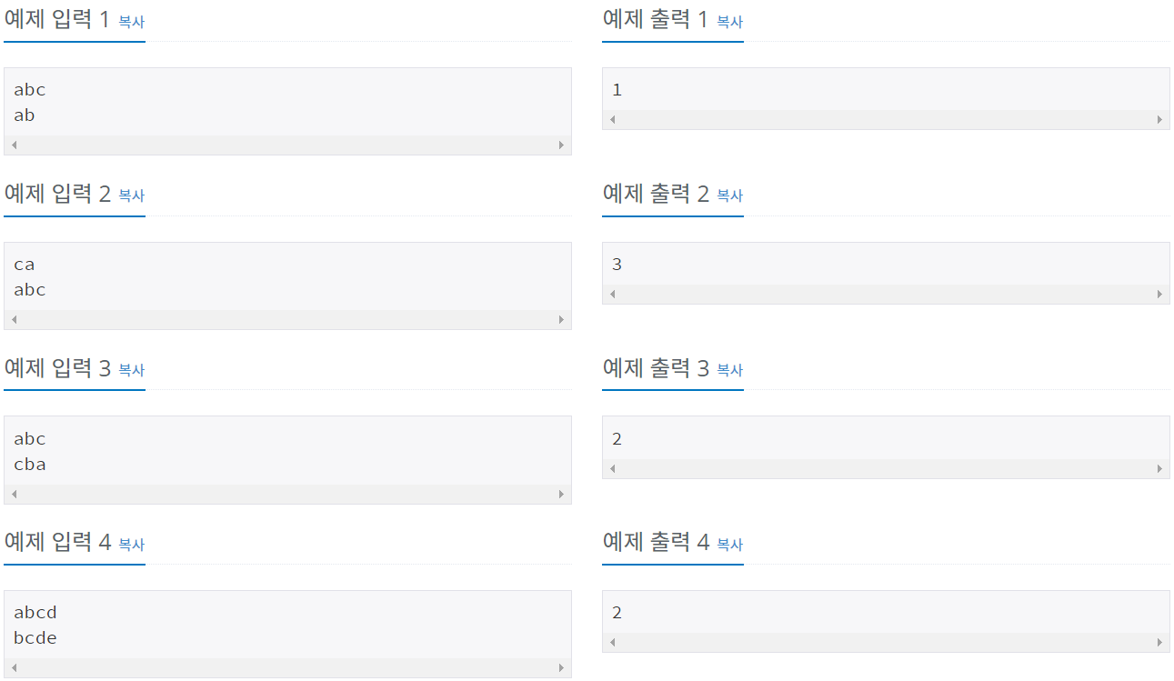 ca, abc 두 문자열이 입력으로 주어질 때,