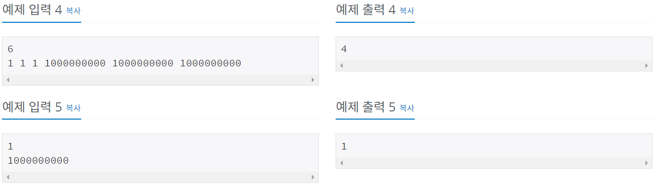 작은 수들과 큰 수를 비교한다? 배열을 정렬하면 편할 것 같다.