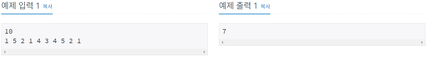 첫째 줄에 수열 A의 크기 N이 주어지고, 둘째 줄에는 수열 A를 이루고 있는 Ai가 주어진다. (1 ≤ N ≤ 1,000, 1 ≤ Ai ≤ 1,000)