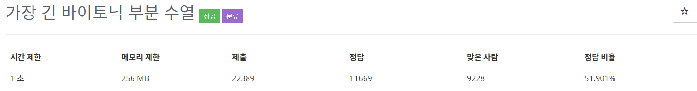 예제의 경우 {1 5 2 1 4 3 4 5 2 1}이 가장 긴 바이토닉 부분 수열이다.