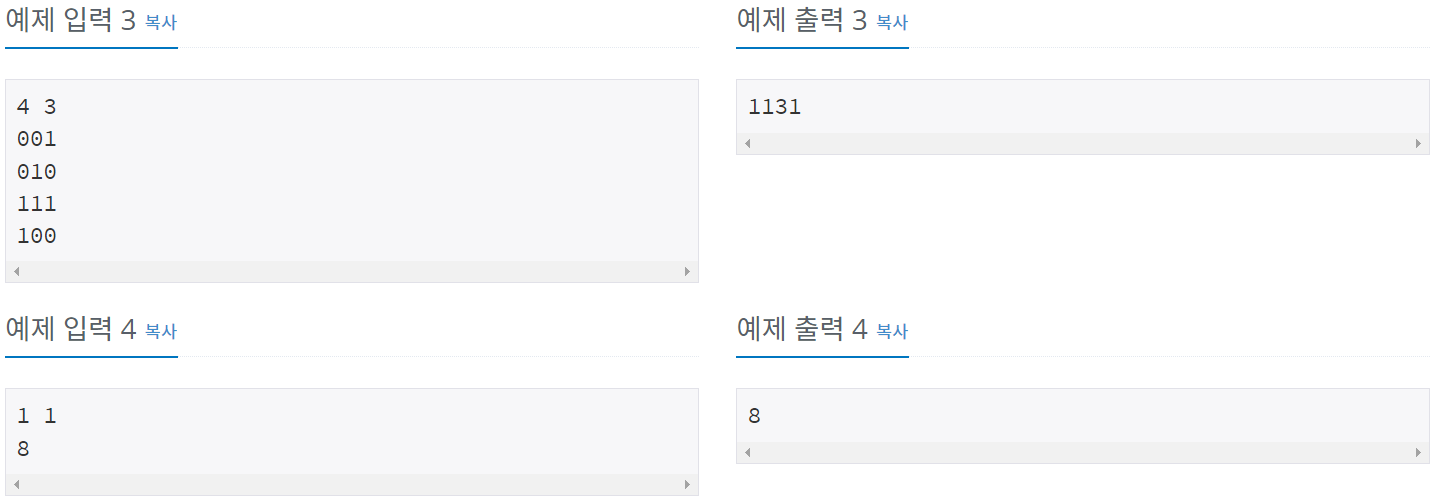 첫째 줄에 종이 조각의 세로 크기 N과 가로 크기 M이 주어진다. (1 ≤ N, M ≤ 4)