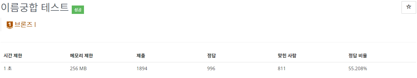 A와 B의 이름궁합이 좋을 확률을 %로 출력한다. 단, 십의 자리가 0일 경우엔 일의 자리만 출력한다.
