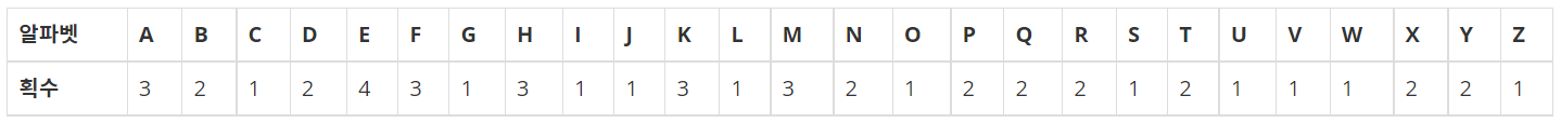 배열이나 map에 알파벳 획수를 미리 저장해놓고,