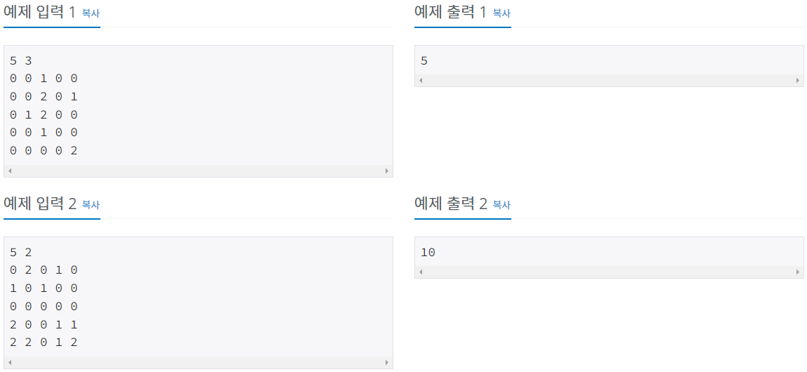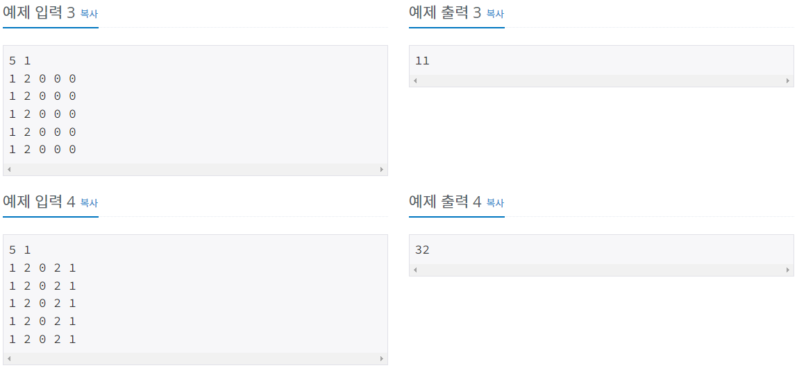 첫째 줄에 N(2 ≤ N ≤ 50)과 M(1 ≤ M ≤ 13)이 주어진다.