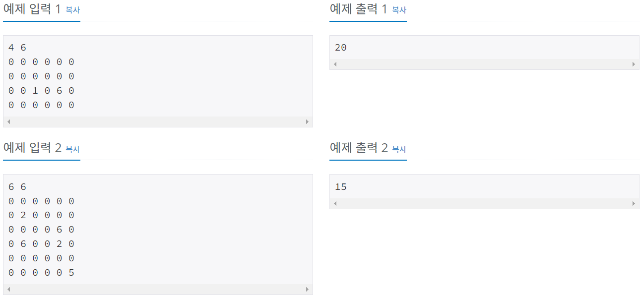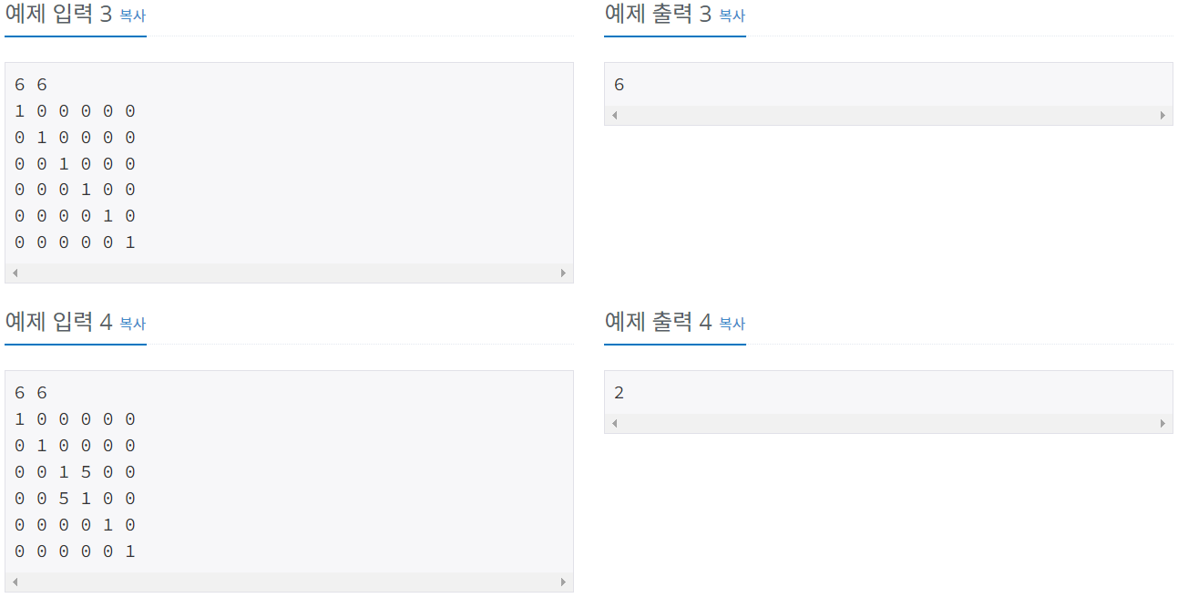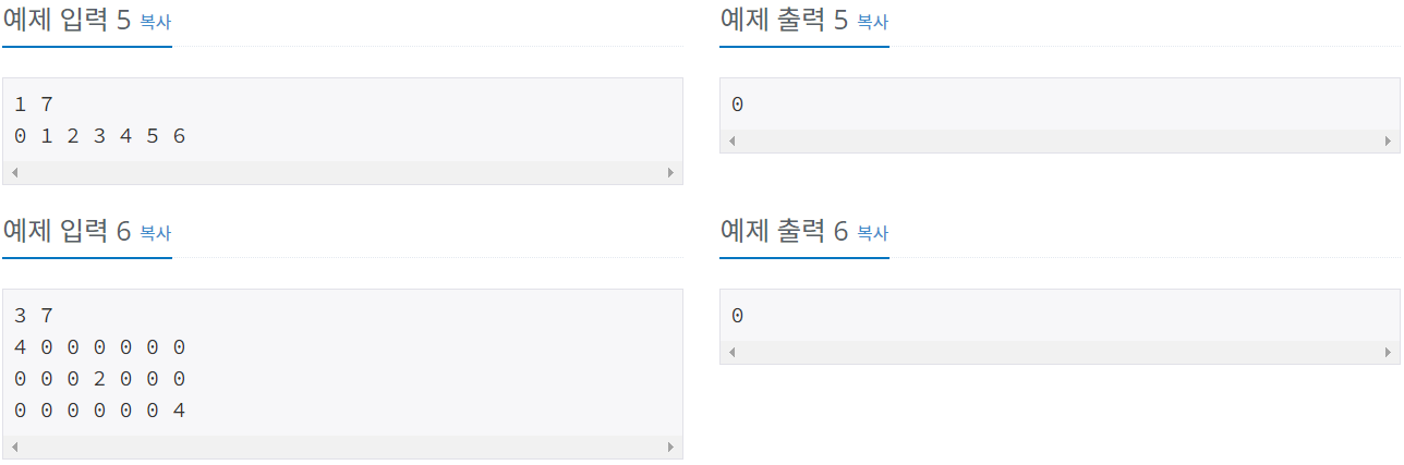첫째 줄에 사무실의 세로 크기 N과 가로 크기 M이 주어진다. (1 ≤ N, M ≤ 8)