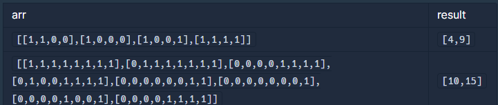 - arr의 각 행에 있는 모든 값은 0 또는 1 입니다.