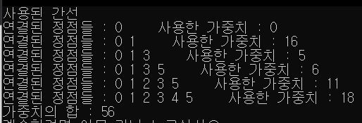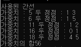 cout << " 사용한 가중치 : " << curDis << '\n';