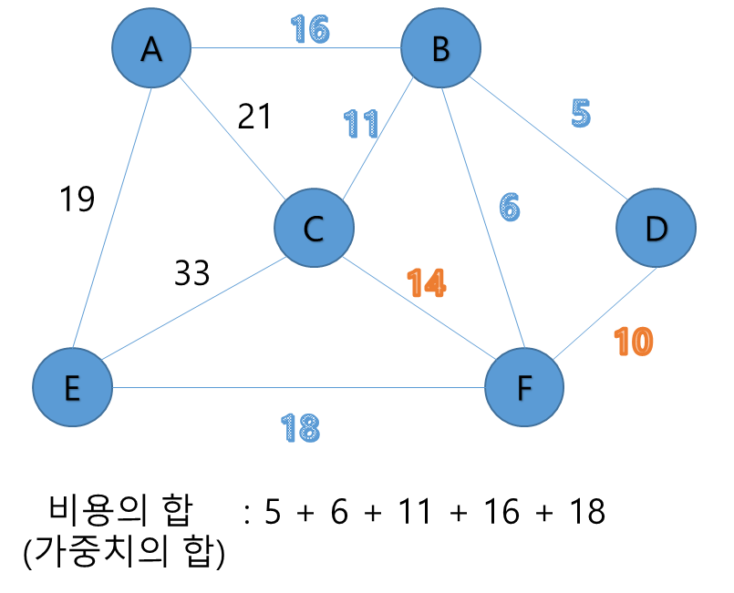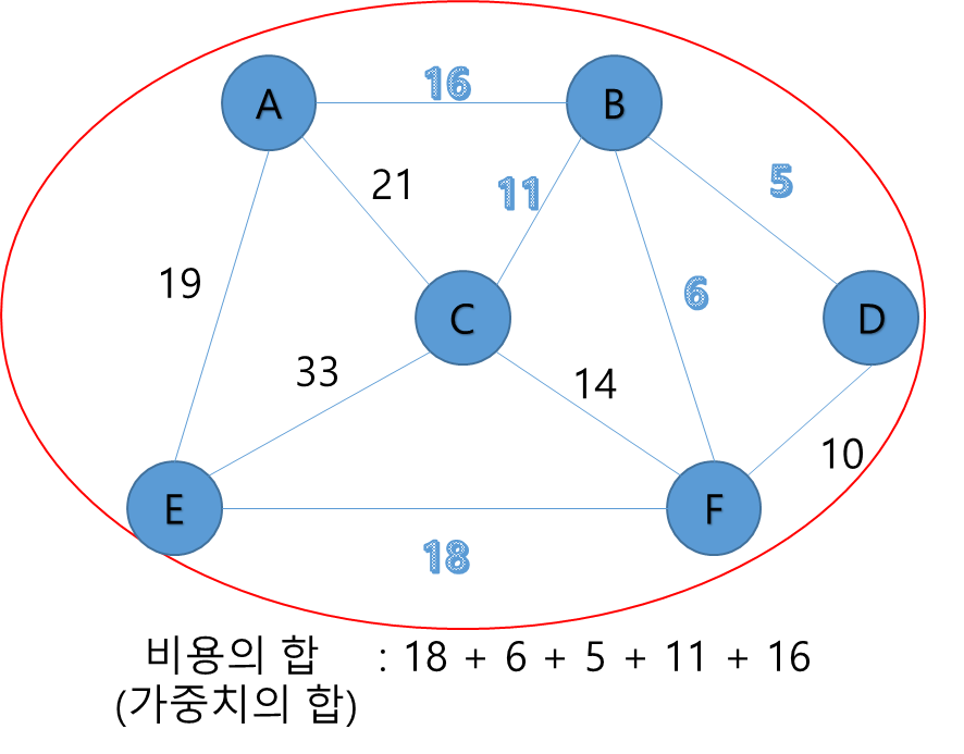 최소 신장 트리에 사용된 최소 비용을 어떻게 구할까?