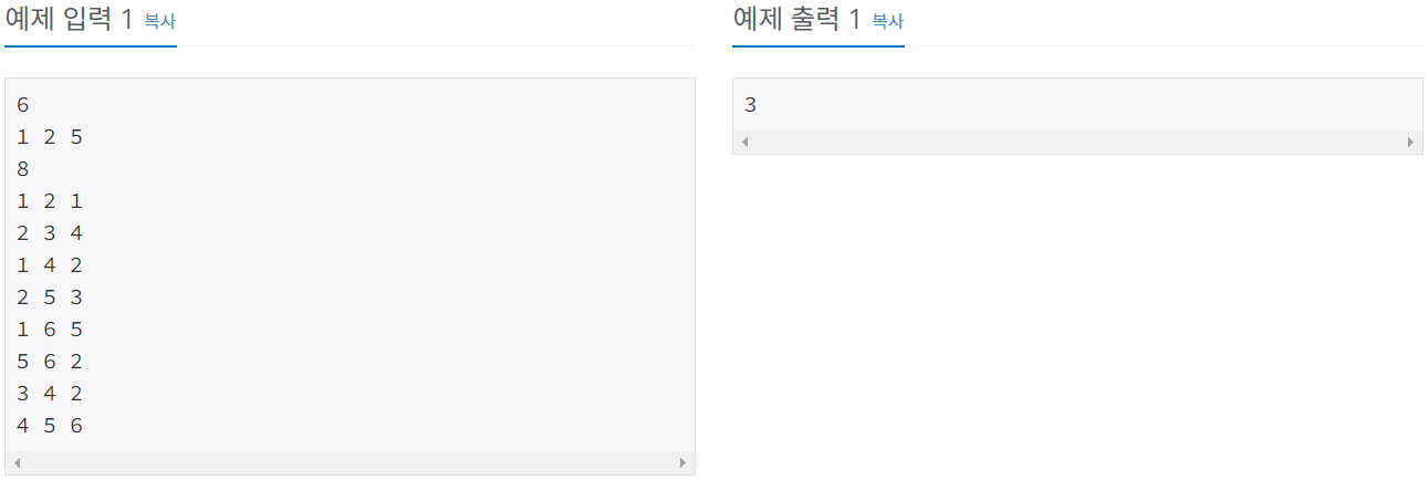 3번째 줄에는 땅과 땅 사이를 잇는 도로의 개수 M이 주어진다.