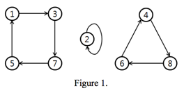1부터 N까지 정수 N개로 이루어진 순열을 나타내는 방법은 여러 가지가 있다. 예를 들어, 8개의 수로 이루어진 순열 (3, 2, 7, 8, 1, 4, 5, 6)을 배열을 이용해 표현하면 (1234567832781456) 와 같다. 또는, Figure 1과 같이 방향 그래프로 나타낼 수도 있다.