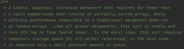 사실 내부에선 이렇게 제한을 두고 heuristic한 방법으로 상황에 맞게 적절한 정렬 기법을 사용한다.