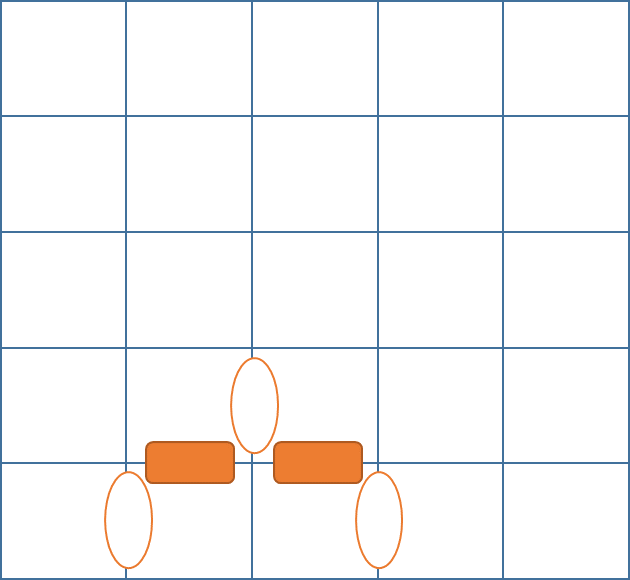 - (5, 0)에서 위쪽으로 기둥을 하나 설치 후, (5, 1)에서 위쪽으로 기둥을 하나 더 설치합니다.