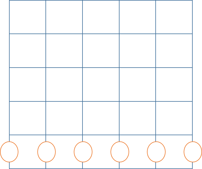 2차원 벽면은 n x n 크기 정사각 격자 형태이며, 각 격자는 1 x 1 크기입니다. 맨 처음 벽면은 비어있는 상태입니다. 기둥과 보는 격자선의 교차점에 걸치지 않고, 격자 칸의 각 변에 정확히 일치하도록 설치할 수 있습니다. 다음은 기둥과 보를 설치해 구조물을 만든 예시입니다.