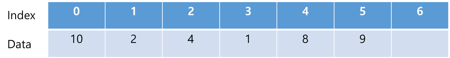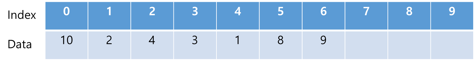 크기가 10인 배열에 7개의 데이터가 들어가 있다고 하자.