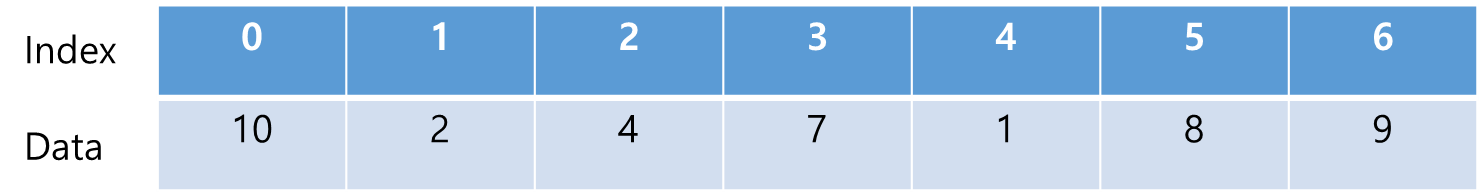 - 논리적 저장 순서와 물리적 저장 순서가 일치하다. (메모리 상에 데이터도 순차적으로 저장된다.)