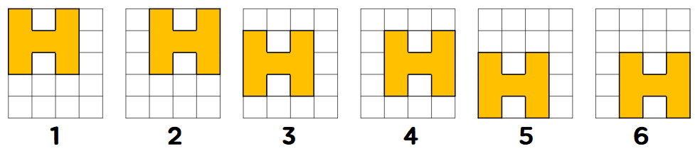 아래는 올바른 모눈종이의 예시이다. 주황색 칸은 스티커가 붙은 칸을, 하얀색 칸은 스티커가 붙지 않은 칸을 나타낸다.