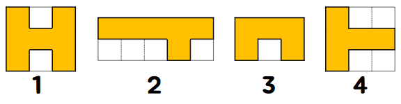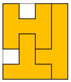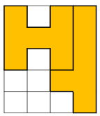 - 네 번째 스티커는 스티커를 시계방향으로 0, 90, 180도 회전 시킨 모양에 대해 온전히 붙일 수 있는 공간이 없다. 그러나 시계 방향으로 270도 회전한 후에는 공간이 1개 생긴다. 스티커를 붙인 후 노트북의 모양은 아래와 같다. 최종적으로 노트북의 18칸이 스티커로 채워졌다.
