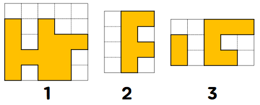 반면 아래는 올바르지 않은 모눈종이의 예시이다. 첫 번째는 윗쪽에 불필요한 행이 있고, 두 번째는 왼쪽에 불필요한 열이 있다. 그리고 세 번째는 스티커의 각 칸이 상하좌우로 모두 연결되어 있지 않다.